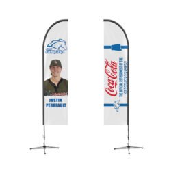 تتضمن هذه الحزمة الفعالة من حيث التكلفة والقابلة للتكيف علمًا من الريش مطبوعًا حسب الطلب، وعمودًا قويًا من الألياف الزجاجية. تم تصنيع الأعلام باستخدام طباعة نقل حراري نابضة بالحياة وملونة بالكامل على مادة بوليستر عالية الجودة، مما يضمن أنها مناسبة للبيئات الداخلية والخارجية.