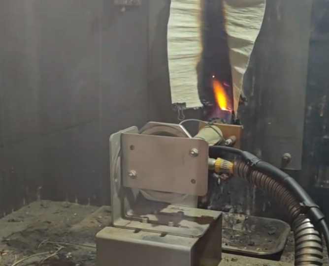 - Test Principle (The “Schachtofen Test”): The material is subjected to a defined flame source and temperature within a vertical fire shaft (Schachtofen).