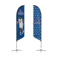 이 비용 효율적이고 적응력이 뛰어난 패키지에는 맞춤 인쇄된 깃털 깃발과 견고한 유리 섬유 기둥이 포함되어 있습니다. 깃발은 고품질 폴리에스터 소재에 생생한 풀 컬러 열전사 인쇄를 사용하여 제작되어 실내 및 실외 환경 모두에 적합합니다.