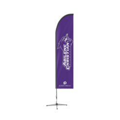 This cost-effective and adaptable package includes a custom-printed feather flag, a sturdy fibreglass pole. The flags are crafted using vibrant, full-colour thermal transfer printing on high-quality polyester material, ensuring they are appropriate for both indoor and outdoor environments.