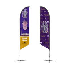 Enhance your school’s presence with custom Albany Great Danes Feather Flags from Strong Display®! Perfect for school events, sports games, and promotional activities, these flags are designed to catch attention and inspire school pride. The double-sided design showcases the striking Albany Great Danes logo and vibrant team colors, ensuring maximum visibility from all directions. Constructed from high-quality, durable materials, these Feather Flags are built to withstand various weather conditions, making them ideal for both indoor and outdoor use. Easy to assemble, transport, and store, these flags offer a convenient and effective solution for all your branding needs. Choose Strong Display® for custom Feather Flags that proudly represent your school and leave a lasting impression.