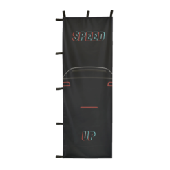 Unleash the speed with our dynamic “Black Glitch Car Nobori Flag,” perfect for revving up excitement at automotive events, car shows, or races. Designed with a sleek, black backdrop, this flag features a stylized glitch-effect car silhouette that looks like it’s racing off the fabric. Emblazoned with the words ‘SPEED UP’ in a bold, digitalized font, it echoes the high-octane thrill of the automotive world.