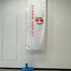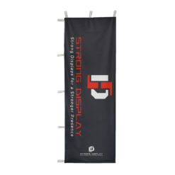 Enhance your brand’s visibility with the custom StrongDisplay Nobori Flag, designed to make a bold statement wherever it stands. This flag features a sleek black backdrop accented with striking red and white text, emphasizing the “StrongDisplay” logo for maximum impact. Tailored to meet your specific branding needs, each flag is made from premium 110G knitted fabric, ensuring durability and high visibility in any setting. The flag comes with a versatile telescoping pole, adjustable from 120cm to 300cm, allowing for optimal height and presence in diverse environments—from trade shows and corporate events to outdoor advertising spaces. This custom Nobori flag is not only a promotional tool but a symbol of strength and quality, reflecting the core values of your brand.