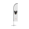 This cost-effective and adaptable package includes a custom-printed feather flag, a sturdy fibreglass pole. The flags are crafted using vibrant, full-colour thermal transfer printing on high-quality polyester material, ensuring they are appropriate for both indoor and outdoor environments.