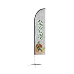 Este pacote econômico e adaptável inclui uma bandeira de penas com impressão personalizada e um mastro de fibra de vidro resistente. As bandeiras são confeccionadas com impressão de transferência térmica em cores vibrantes em material de poliéster de alta qualidade, garantindo que sejam adequadas para ambientes internos e externos.